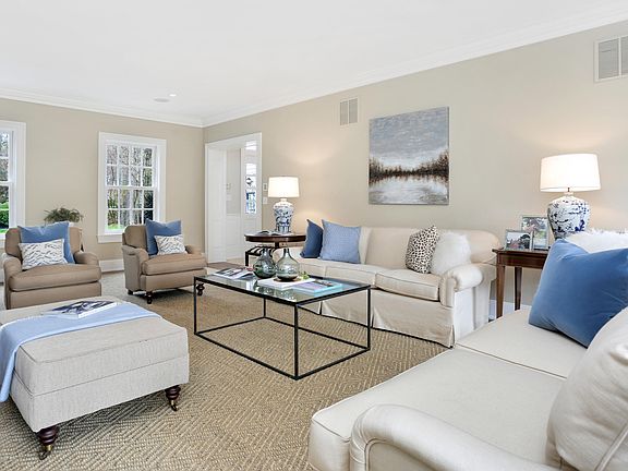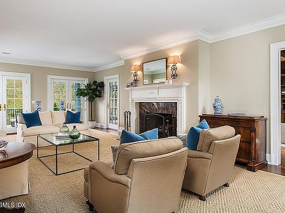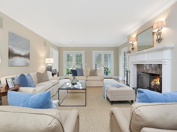 Classic stone and shingle Georgian manor located on a quiet lane just off Round Hill Road. Stunning views of a peaceful lake. Double height front to back entrance hall, elegant formal rooms, french doors that open to an expansive terrace overlooking the pool and lake. Gorgeous eat-in kitchen with walk in pantry and doors opening to a beautiful veranda and level verdant lawn off the family room which also opens to a large terrace. Second floor boasts a large master bedroom suite w/ fireplace and 4 additional bedrooms all en-suite, a playroom/family room & separate laundry. Finished large lower level with changing room, wet bar & gym. Pool, dock, generator, 3 car attached garage.