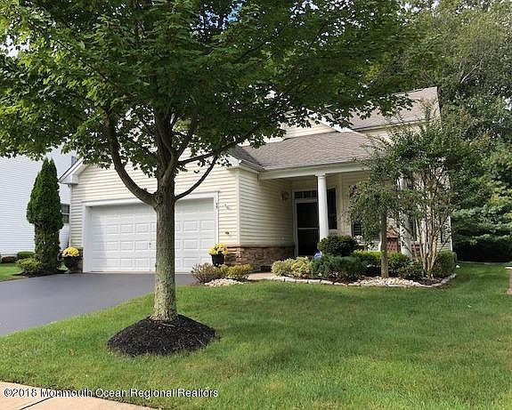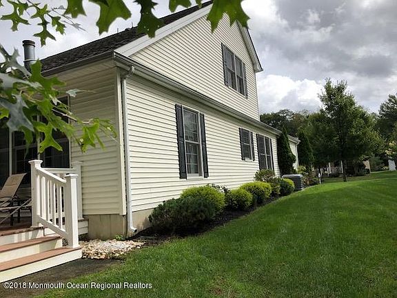 Impeccably cared for inside and out with private rear yard. Hardwood floors, custom moldings and lovely window treatments which are included. Living room with built-in cabinet, gas fireplace with 50'' flat-screen tv above with surround sound. Sliding door leads to 30' Trex deck backing to woods. California closet in master bedroom, soaking tub in master bath plus a new framelss shower enclosure. 2 year old two zone HVAC. Just move in and enjoy the community with it's clubhouse, pool, tennis court, bocce court and many activities!