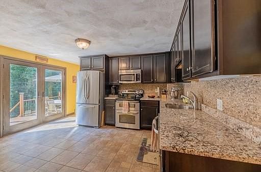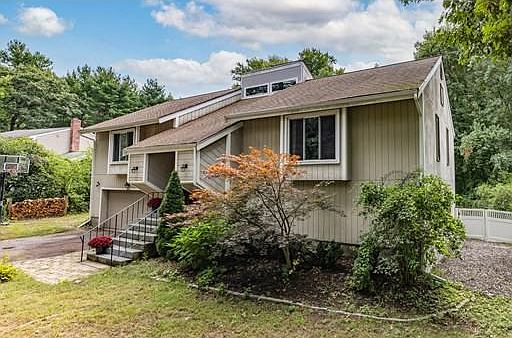 Do you like privacy? This Sharon contemporary Raised Ranch in a cul-de-sac neighborhood is private yet minutes from I-95 is for you! The double front doors open to an open concept home with a large living room, sunken family room with a fireplace, dining room and kitchen. Spacious deck off the kitchen overlooks a fenced, private back yard. Three large bedrooms, two full baths upstairs. Hardwood floors throughout! Lower level is walk-out with another possible bedroom, large living room with a wood stove and bath with laundry. Perfect for an extended family. Interior access to the garage.