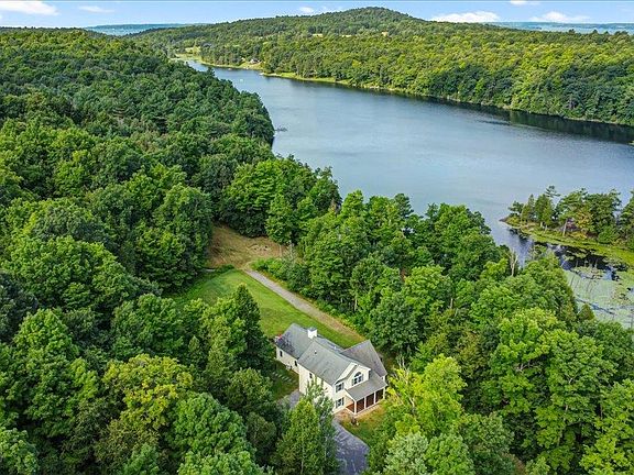 This is Vermont Serenity at its BEST! Imagine hearing the loons while having coffee from your deck each morning .Welcome to your extremely private home within the boundaries of Chittenden County and only a 30 minute drive to Burlington. Located at the end of a privately owned road, this post and beam home is situated on 10 acres that run along Long Pond, a 47 acre nature lover's paradise where only non-motorized watercraft are allowed. Upon entering you'll immediately notice the vaulted great room, always the heart of the home. In addition to the great room, there is a large formal living room anchored by a propane fireplace. The kitchen features stunning soapstone countertops and exquisite custom wood cabinetry with an open feel that continues into the dining area. A first floor guest room and a full bathroom with jetted soaking tub complete this level. Upstairs you'll find a master suite with vaulted ceilings, an attached bathroom with beautifully tiled shower, and a very spacious walk-in closet. Two other bedrooms and an additional guest bathroom complete the second floor. Downstairs is a new office/studio with custom wall shelving and full access to the side lawn to walk down to the water. The adjacent family room includes a live edge bar complete with beverage cooler and dishwasher. Step outside to enjoy a fire with friends on the patio directly from the bar! With 5 minisplits throughout the home and a beautiful pond to play in, you will never be uncomfortable here.