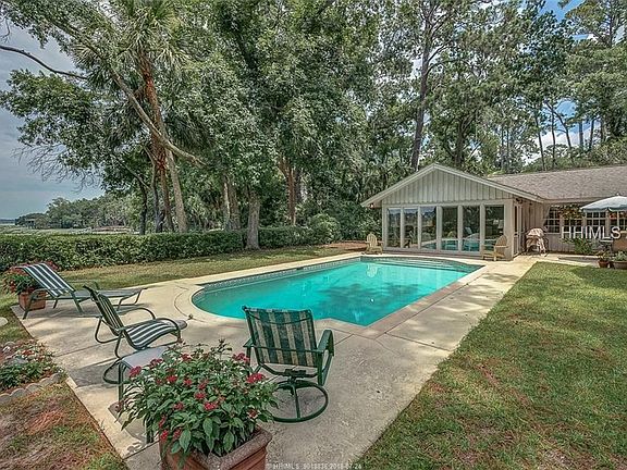 You will not believe the setting and the view from this 4 BR, 3.5 BA home on a bluff in Baynard Cove Road. This is an oversized lot with a large pool & attractive landscaping. There is a dock and seawall. Features include: large living room, dining room, kitchen/family room/sunroom. Large 2nd floor office could be 5th bedroom or den/office/library. Wood burning fireplace. Laundry room. Large cedar closet. Very good bedroom separation with separate entrance to bedroom wing from outside. 2-car garage and circular driveway.Permanent open space on one side. Bike to the beach!