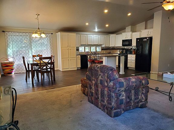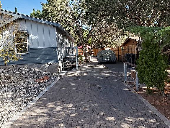 One of the larger lots in the subdivision, with six foot Redwwod/Cedar fence on two sides of the backyard. Many, Many tress, including pears, white peach, and apricot. Paver driveway is very welcoming as you drive onto the property. RV Parking and other vehicle parking available. New storage shed with roll-up door on one end. GOLF COURSE Turf with automatic sprinkler in the back yard. Split floor plan with vaulted ceiling and recess lighting. Master Suite with master bath and walk-in closet, separate tub and shower. Built-in entertainment center in the open concept living room. Spacious kitchen with island and plenty of storage and pantry cabinetry. New exterior paint, (Nov.2020) Close to golf, trailheads, shopping and Oak Creek.