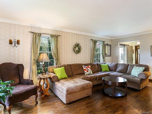 Desirable Lower Easton location Lovely 4 Bedroom 2.5 bath classic New England Colonial over 2800 sqft. Wonderful family home with large flat yard in private relaxed setting, perfect for play or gardening. Bright sunporch, patio area and covered side-porch for relaxing on the weekend. Stainless appliances, new central AC. Not your cookie cutter contemporary, character features include lovely shiplap, large fireplace, and hardwood floors. Great potential for new owners wanting to put their stamp on it. Minutes to award winning schools, Merritt Parkway and 136. Two car attached garage. Property abuts a cul de sac. Additional 950 sq ft partially finished basement. Full unfinished walk-up attic adds generous storage space. If you're looking for a home with character and lots of potential don't miss it