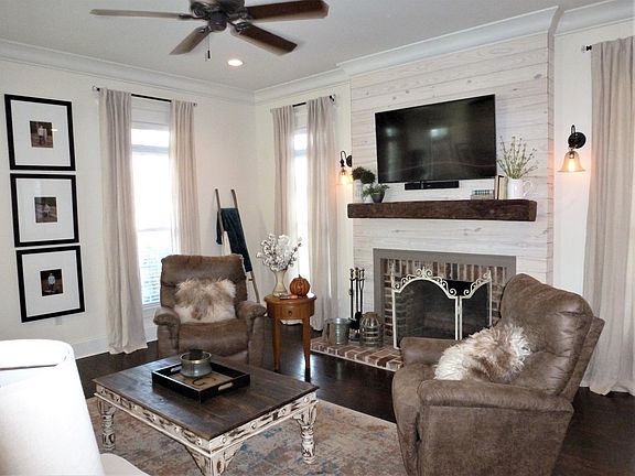 Gorgeous well-kept home in beautiful Bellegrass Sub. This 4 bedroom 2.5 bath home has stunning curb appeal and a wonderful homey feel. Open plan with large kitchen and family room. Master bedroom downstairs with 3 bedrooms upstairs. Beautiful paint colors and custom extra decorator's touch everywhere! Bathrooms have large custom tile showers. Pretty shiplap accent walls and around firplace featuring a rustic mantel. Nice large porch and garage in back plus a fenced backyard.