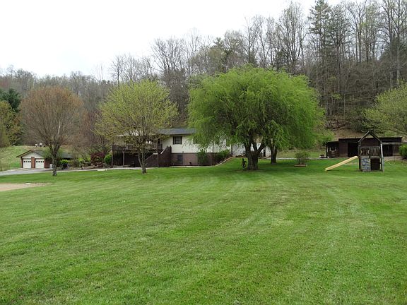 This spacious, lovingly maintained home is situated in the pastoral Petersburg community of Marshall. Enjoy rural living with 10 minute drives to Marshall, Mars Hill, I-26, and a short commute to Asheville. This home boasts gleaming hardwood floors, large eat-in kitchen with wood cookstove, master BR on main, and a lovely covered porch to enjoy the views of the ample flat acreage and sweet landscaping in the front yard. Downstairs offers great entertaining possibility, with a billiards table, wet bar, media room and an extra bedroom - perfect for parties or potential second living quarters! Detached 2-car garage has been converted to a spacious workshop, and additional barn could be converted back to livestock barn. Plenty of flat, sunny pasture for gardens or some livestock. Front yard has it's own softball field, but sellers will happily sow in grass if requested. FIBER OPTIC INTERNET ON PROPERTY AND AVAILABLE NOW.