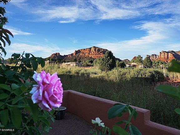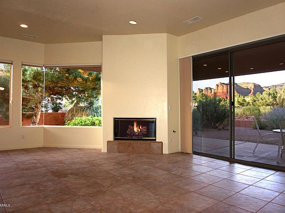 Beautiful Sedona Golf Resort home tucked away in a quiet cul-de-sac with gorgeous red rock views across the golf course. Split bedroom floor plan, 2 bedrooms & 2 full bathrooms. Large master suite with beautiful views to wake to, sliding glass doors out to the covered rear patio, luxurious master bathroom with glass block, shower & separate soaking tub, and a large walk-in closet. Tile floors throughout and berber carpeting in the bedrooms, great room with soaring high ceilings & walls of glass, gas fireplace and sliding glass doors out to the beautiful covered rear patio, ideal for entertaining & soaking in the expansive views. There is an extra room that could be dining, office or den, and an attached 2-car garage. Landscaping on auto drip system, all appliances are included.