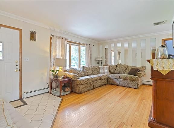 Great little home in the perfect location. Ranch style home offers 4 well sized bedrooms, 2 full baths formal dining and eat in kitchen. Nice large double deck overlooks .24 acres. Large master boasts private full bath. Newer roof, decking and A/C compressor. Plenty of possibilities in the basement, installed egress window, currently a large storage area. Single car garage-great for the winter weather.. Well established neighborhood is close to all major highways, schools, shopping & dining facilities... The coveted Woodbury Recreational facilities are fabulous, The community pool and the Reservoir. Indicated taxes do not reflect the STAR savings of $946.00, Net taxes $8459.00 - Taxes do include sewer and refuse.
