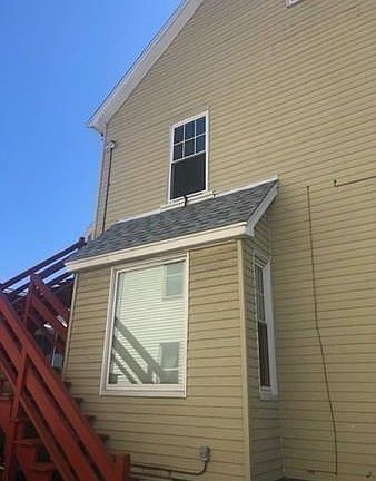 Spacious two family with garage and off street parking. First floor consists of a full eat in kitchen w/ ceramic tile floors & a pantry. Light and bright living room with hardwood floors. Large master bedroom w/ a wood burning fireplace. Additional finished room off the kitchen that can be used as an office, study or guest room. 2nd floor unit boasting a large kitchen and a living room with hardwood floors and 4 bedrooms 2 of which share a closet. 2 year old roof and vinyl windows.