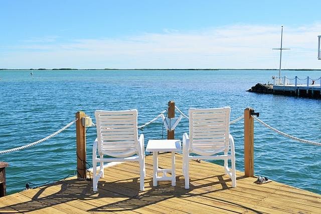 Picture perfect views of the open water and down the canal at this spacious 2 Bedroom 2 Bath home in Seaside Resorts! Enjoy wide open views of the bay while sipping cocktails on the waterfront Porch or when entertaining in the large Living and Dining Rooms. The two split Bedrooms and Baths offer lots of privacy. Immediate access to the open water from the 35' dock. Guest parking available across the street. Seaside Resorts is a beautiful waterfront community boasting 2 pools, clubhouse, marina, exercise room, boat storage & wash down area & just minutes to the magic of Key West.