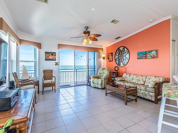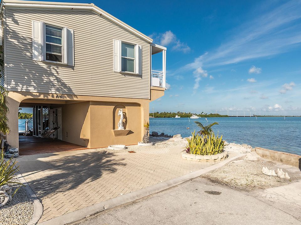 One of the largest lots in the gated community of Seaside Resort, this beautiful and private 2 bedrooms 2 bathrooms cul de sac home is located on a deep and wide boating canal. A 40 ft composite deck offers easy access to open water and back country. Built on concrete piers and stairs, with aluminum railings, metal roof & insulated vinyl siding. Interior comprises of kitchen with granite countertops, tile flooring, crown moldings, recessed lighting; new washer,dryer, AC. Plenty of storage with 2 enclosed sheds, parking for up to 3 cars,screened area overlooking the water. Savor the sunsets in your private jacuzzi or enjoy your morning coffee while relishing the unobstructed water views from each room and patio. Turnkey! This home has everything you want to live the island lifestyle.