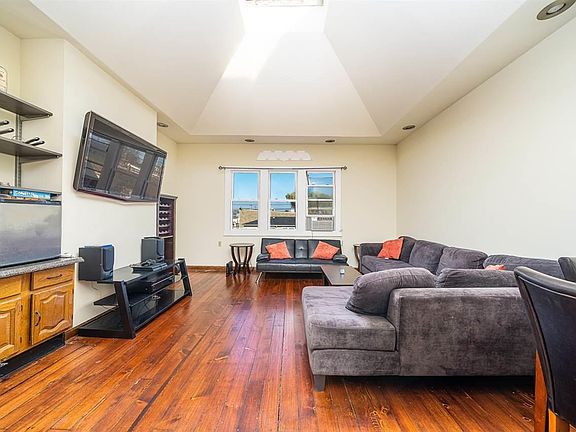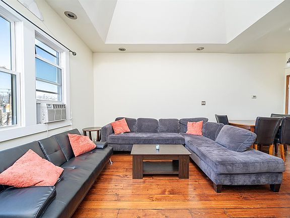 Bright and airy 1000 square foot 2 bedroom/2 Bathroom top floor duplex apartment for rent located 2 blocks from Riverview Park in Jersey City Heights. The living area features soaring 15' ceilings with 2 skylights capturing every moment of natural sun. Updated open concept kitchen with stainless steel appliances and room for dining area. The quiet top floor master bedroom is complete with plenty of closet space, hardwood floors and master bathroom with dual vanity. To complete the package, there is a dedicated laundry unit in the basement. Located on a quiet street just steps away from Palisades Avenue featuring city transportation, Citi-Bike station, parks, restaurants and coffee shops. This apartment defines the new Heights lifestyle with weekly Farmer's Markets, local entertainment and shopping.