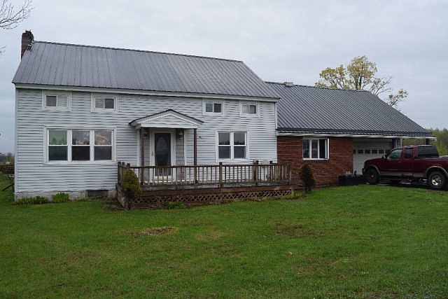 This farmhouse has the potential to be a large five - 6 bedroom single family or duplex with up and down apartments. Lower floor has one large bedroom, bath, summer kitchen, living room and year round kitchen. Upper floor has separate entrance, kitchen, bath, living room, and three bedrooms. There is a large older tie stall barn, free stall barn and shop. The older tie stall barn has a double four milking parlor and milk house with 600 gallon bulk tank. Attached two car garage has automatic door opener.