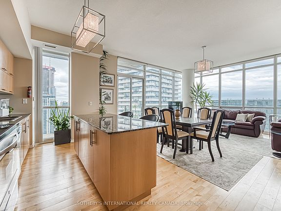 Soaring above the city in the luxurious Maple Leaf Square condos, this fully furnished Lower Penthouse corner suite offers southeastern panoramic views of the city skyline and lake. Floor-to-ceiling windows and 10-ft ceilings flood the open-concept living, dining, and kitchen areas with natural light. Large bedrooms, including a primary retreat with spa-like ensuite, walk-in closet, and private balcony access, a second bedroom with large closet, plus a third enclosed room with a closet-perfect as a 3rd bedroom or home office. Enjoy two walkouts to a generous balcony for stunning vistas. Premium amenities include 24/7 concierge, indoor and outdoor pools, hot tub, rooftop terrace, gym, theatre, business centre, and more. Direct underground access to Union Station, the PATH, Scotiabank Arena, Longo's, LCBO, and Toronto's top entertainment. Urban living at its finest.