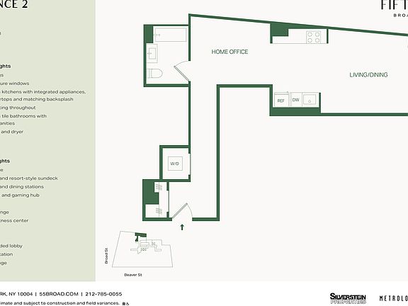 Indulge in over 25,000 square feet of world-class amenities, including a resort-style roof sundeck with an outdoor pool, Technogym fitness center, coworking lounge, and 24-hour attended lobby. Perfectly situated in this dynamic neighborhood, Fifty-Five Broad offers easy access to high-end shopping, Michelin-starred dining, and expansive green spaces, with excellent transportation options nearby. Make this exceptional building your new home and become part of the ongoing story of one of the city's most dynamic neighborhoods. Schedule your private tour today and discover your new home!