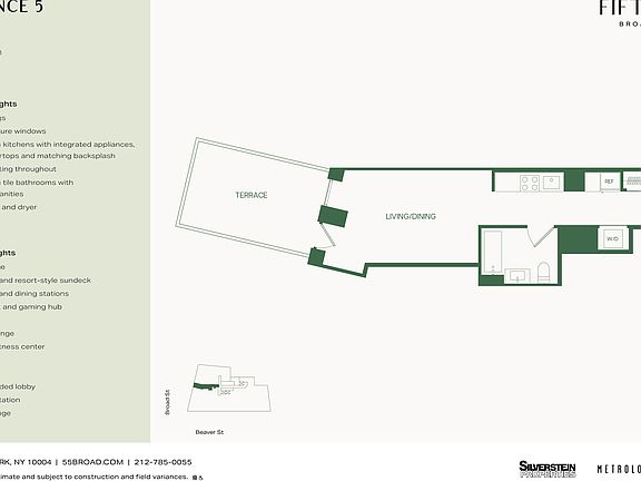 Indulge in over 25,000 square feet of world-class amenities, including a resort-style roof sundeck with an outdoor pool, Technogym fitness center, coworking lounge, and 24-hour attended lobby. Perfectly situated in this dynamic neighborhood, Fifty-Five Broad offers easy access to high-end shopping, Michelin-starred dining, and expansive green spaces, with excellent transportation options nearby. Make this exceptional building your new home and become part of the ongoing story of one of the city's most dynamic neighborhoods. Schedule your private tour today and discover your new home!