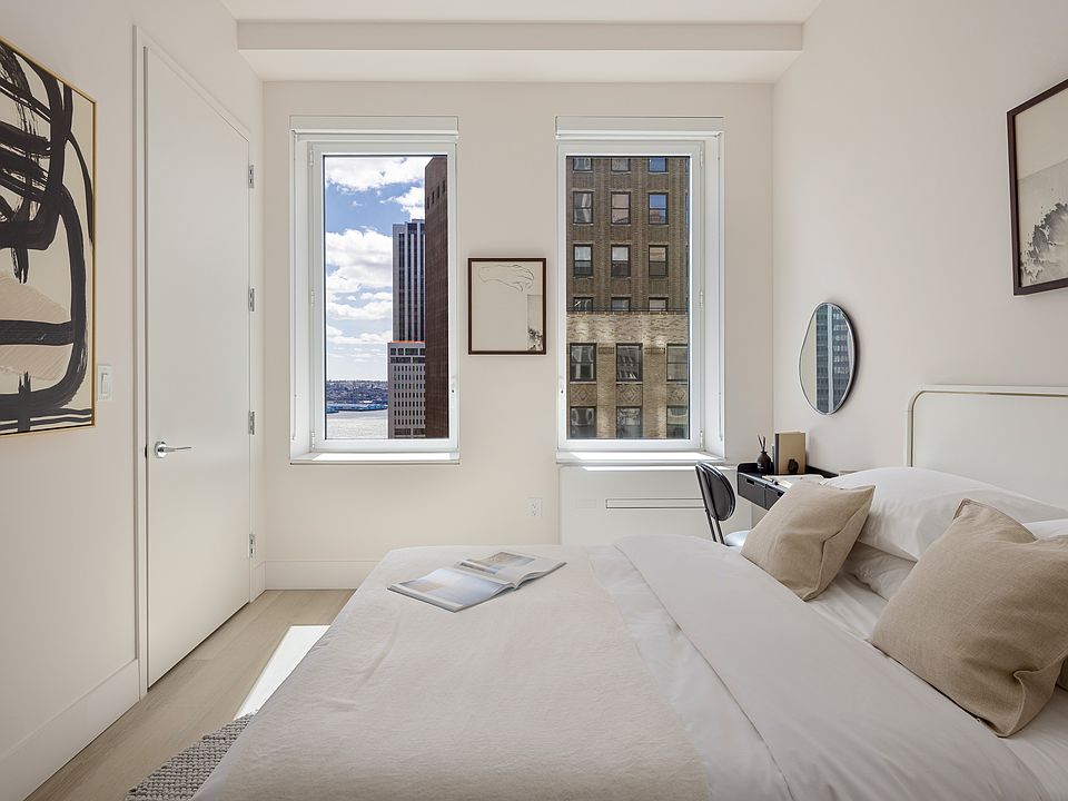 Welcome to Fifty-Five Broad, where New York's rich history meets contemporary luxury living in the heart of the Financial District. Each residence boasts 10-foot ceilings, oversized picture windows, and stunning cityscape or water views. Enjoy custom Italian kitchens with integrated appliances and quartz countertops, luxurious bathrooms with Porcelanosa vanities, and the convenience of in-unit Bosch washers and dryers.