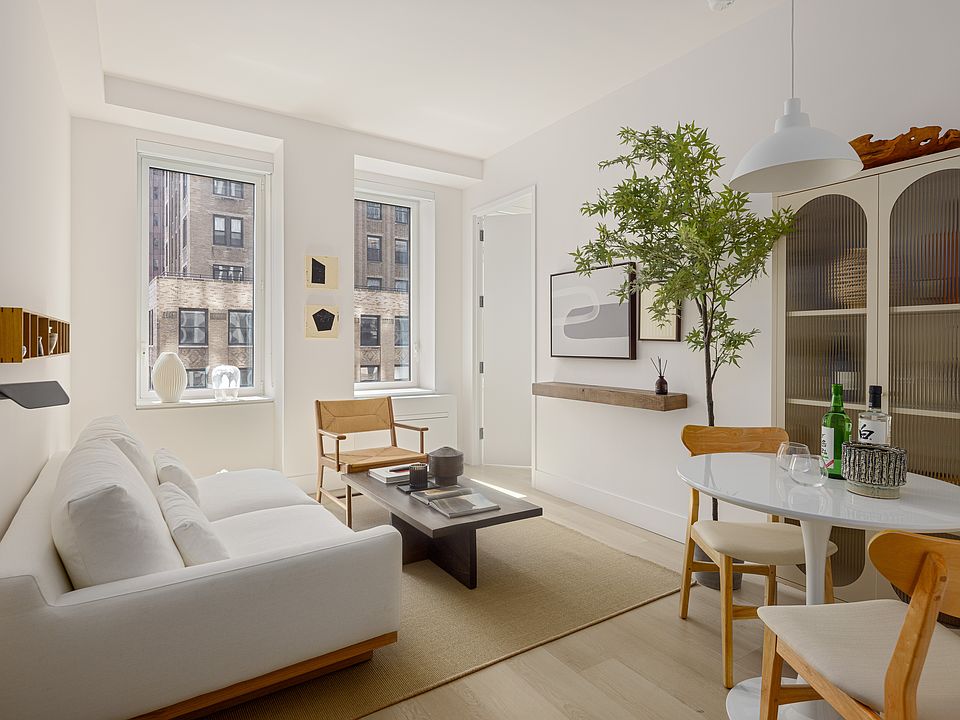 Welcome to Fifty-Five Broad, where New York's rich history meets contemporary luxury living in the heart of the Financial District. Each residence boasts 10-foot ceilings, oversized picture windows, and stunning cityscape or water views. Enjoy custom Italian kitchens with integrated appliances and quartz countertops, luxurious bathrooms with Porcelanosa vanities, and the convenience of in-unit Bosch washers and dryers.