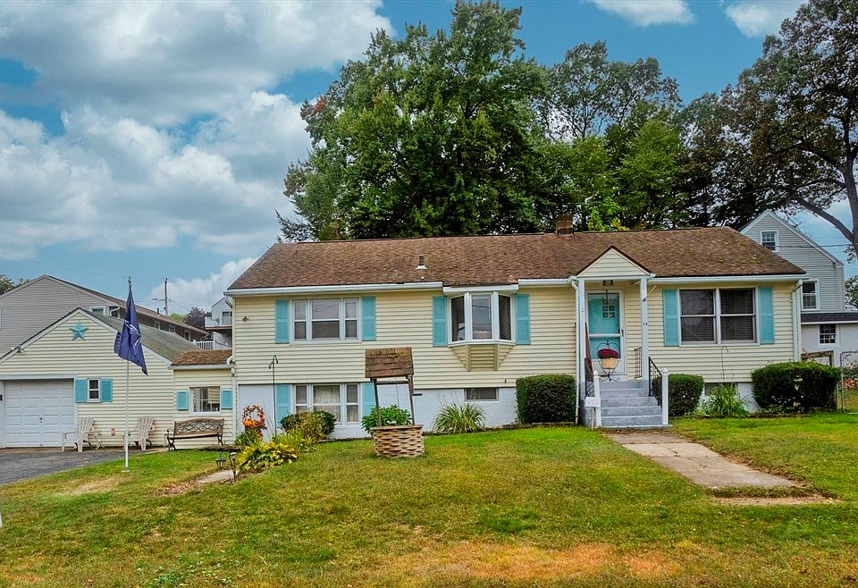 A sweet retreat! This charming ranch has a cottage core flair that makes you feel right at home! Great space for entertaining in the open living/dining room with lovely new laminate flooring. The kitchen is the heart of the home with its white cabinets and soft, serene blue accents. All appliances are being left for the new homeonwer. The primary bedroom has a stylish and attractive accent wall. You will appreciate the additional family room in the partially finished lower level with walk-out, as well as loads of storage space. Plenty of room for gardening and even more space for entertaining in the covered/screened porch attached to the large shed. If you like to putter, the oversized one car garage has an attached covered storage area, as well as a workshop and half bath! Convenient location within short distance to highways, shopping, schools and more.