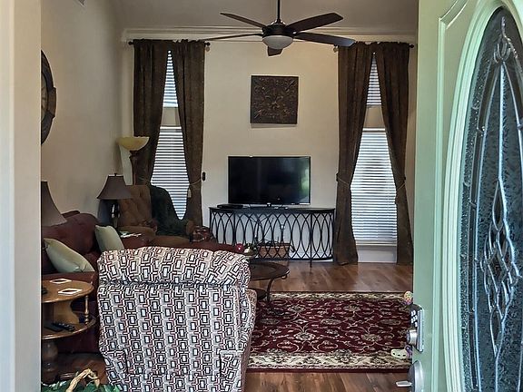 Step into a modern home with 15 ft ceilings, crown molding, oversize new ceiling fan and grand entryway with niches. Formal dining room with large windows. Master suite has a huge walk in closet with room for a dresser. Master bath has a walk in shower with double shower heads and a corner jetted tub. Perfectly updated with new carpet, interior paint, bathroom fixtures and exterior lights. Large lot with oversize landscaped yard includes a storm cellar and storage shed.