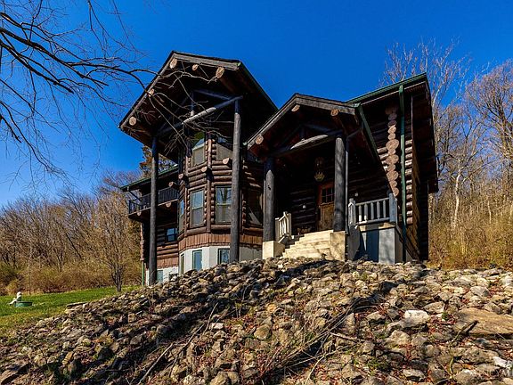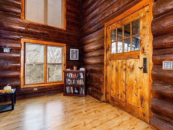 One-of-a-kind, Handcrafted Log Cabin/Chalet with 26ft Vaulted Ceilings/Stone Fireplace nestled on a private, 1+acre setting with a panoramic view of the Ohio River and local parks/greenspace/city amenities nearby! The full-scribed logs used in the home range from 10 to 24inches in diameter. Other features include new Kitchen Cabinets/Counters and fume head(2023/24), Exterior of the home was stained in 2023, Newer HVAC, Pella Windows, Loft area for Study/Work space, Walkout from Great Room to 27x24 deck, Oversized 2-car garage, EV ready garage, Partially Finished Lower Level with Walkout, Roughed-in 1/2-bath, and freshly sealed driveway and backyard French drain (2024), Jaco-epoxy-seal of foundation wall cracks 2021.