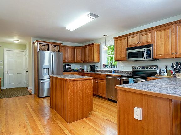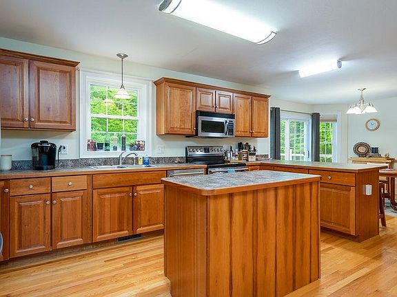 A definite must see beautiful 4BR/4BA vinyl-sided Colonial home with 2 stall garage. The 1st floor boasts a large bonus room with Cathedral ceiling and gas fireplace, kitchen with breakfast bar, dining area with slider access to the large deck, den that can be used as a formal dining room, currently living room is being used as a office. The 2nd floor features the Master BR w/recently remodeled en-suite and a walk-in closet, 2nd upstairs bath w/laundry area, a large hall closet and 2 more bedrooms (one being used as a craft room). The lower level area contains another large bedroom, a kitchenette, a dinette, walkout with slider to patio under deck, large family room, another bathroom w/laundry, plenty of storage in the room at the base of the stairs as well as a mechanical/utility room with even more room for storage. The outdoors is a great space for entertaining your guests. The driveway features a hammerhead as a turn-around and area for parking additional vehicles including a camper along side the garage. All this located on over 5 acres in a country setting in Hopkinton with that small town vibe and a great school system! This one is not to be missed! Schedule your showing today! Open house Saturday from 10 - 12.