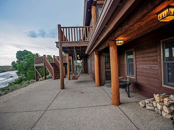 - Exterior Features: Acreage Fenced, Deck, Fishing, Flat Terrain, Horse Property, Hunting, Irrigated, Landscaping, Mountain View, Production Ground, Recreational, River Frontage, RV Parking, Shop, Wooded Acreage, Adj to BLM, Barn, Corrals, Hand Line, Pond, Dirt Ditches, Loafing Shed