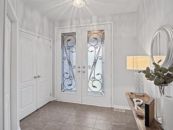 This stunning executive all-brick home in Bowmanville boasts exceptional curb appeal and is perfectly situated across from a park. A grand entrance with tall double doors welcomes you into this spacious 4-bedroom, 4-bathroom residence with soaring 9 ft ceilings throughout. The great room features an 18 ft high ceiling, a cozy gas fireplace, and expansive windows that flood the space with natural light. The open-concept kitchen offers tall cabinets, a breakfast area, and a walkout to the backyard. The luxurious primary suite includes a 4-piece ensuite and his-and-hers closets, while the second bedroom has its own private ensuite. The third and fourth bedrooms share a well-appointed 4-piece bath. A main-floor office/den with French doors can easily serve as a fifth bedroom. Additional highlights include hardwood stairs with iron rod spindles, upper-level laundry, and upgraded lighting throughout. Fully Finished Basement Apartment For Great Income Potential.