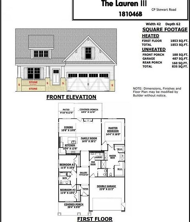 The Lauren III plan features 3 bedrooms and 2.5 baths with the master split from the other two bedrooms. A large gallery entrance provides for a graceful entry into the open family room, kitchen, and dining room. The master has his and her walk-in closets and bathroom vanities. The covered back porch is a great space to entertain family and friends. A double car garage. Located in desirable Harnett County close to Lillington, Sanford, Fuquay-Varina, and a short commute to Fort Bragg.
