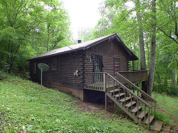 This adorable rustic log cabin is in a peaceful community located in the Dills Hills Subdivision. This home would be a perfect starter home for a small family, a perfect mountain getaway or a great seasonal rental. Features 2 bedrooms/1 bathroom, split bedrooms, and an open floor plan with main-level living. The kitchen/dining/great room features a rustic stone fireplace with a wood-stove insert and beautiful rustic logs walls throughout, a vaulted ceiling and laminate wood flooring in the main living area. The exterior of the home has been well kept has a covered front porch and open side deck with a newer metal roof. The partial basement is unfinished area with a washer and dryer hook up with a outside entrance only. This quaint and cozy cabin is a must see and is priced to sell, very motivated seller!