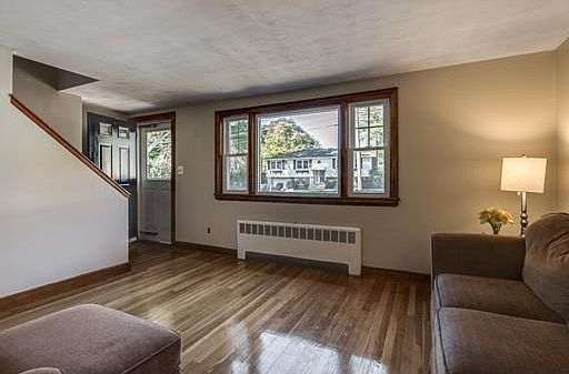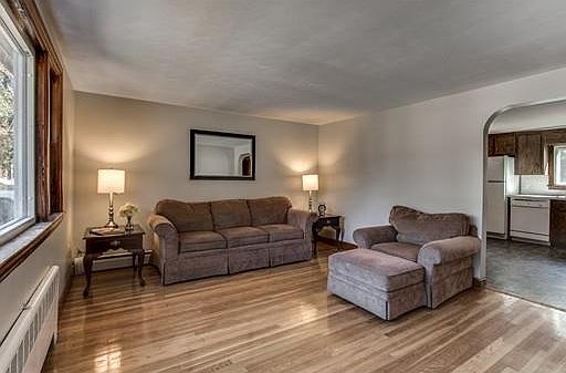 This 3 bedroom cape offers a versatile floor plan with great potential at an affordable price.The home sits on a good size level lot,great for children and pets.First floor front to back master bedroom with bow window and hardwood flooring offers one floor living with additional 2 bedrooms and bath on the second floor.Picture window and hardwood flooring in the sun drenched living room. Never a wait with 2 full baths,freshly painted interior,energy efficient home with new furnace and new insulation recently installed. An added bonus to the home is its brand new roof. Town water and town sewer. Don't miss the opportunity to customize and decorate your own home!