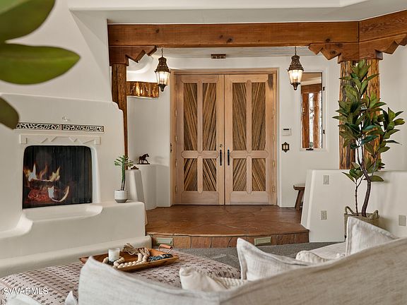 The Dry Creek / Camino Del Caballo corner location gives this architectural residence unstoppable and unblockable views of Bear, Cockscomb, Doe, Boynton Canyon, Thunder Mountain, and the Mogollon Rim. Remodeled throughout, this fresh property is what Sedona life is about. Elevated—gated security and a long drive leading to the estate's water garden entry. THREE car garage, Three Bedrooms with Two office spaces. Five bathrooms (2 Full/3 Powder) sunset patio and an enclosed courtyard for your guests, family, or children.