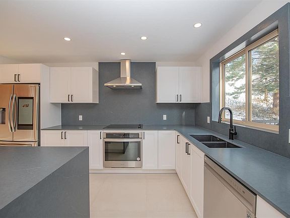 Imagine waking up at this 4.99 acre property w/ the quiet sounds of nature right outside. Private south facing acreage; garage w/ loft, pole barn & beautifully renovated home. The property is gated & has panoramic views of the mountains. The entire home is thoughtfully designed & built with luxury finishings & attention to detail including in-floor heating in the kitchen & bathrooms. The main level features a bathroom/laundry, 2 beds, w/ an open concept kitchen (quartz countertops) that flows into the living room w/ stunning views, wrap around deck & wood stove. Upper level features a loft area & master w/ walk in closet & bathroom w/ jetted tub & custom tile shower. Lower level offers a clean slate of 1136 sq ft of unfinished space,bring your ideas. The detached triple garage is sure to please with three 7' doors,mezzanine area & lean-to storage. The yard has a small fenced pasture area, chicken coop & RV parking Additional features; 5000 litre cistern for rain water & a 25+ GPM well.
