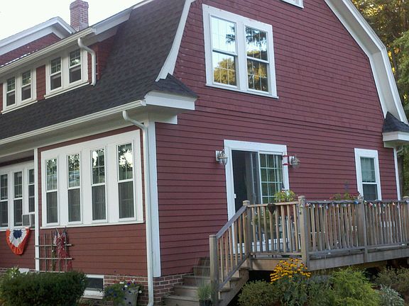 Antique Gambrel Cape situated on landscaped, lot including fenced-in back yard. Home features original fireplace, hardwood floors, updated kitchen (2008) In-law suite (2010) Master suite has air jet tub, walk-in closet with laundry facilities. 3000 sq. ft carriage house built in 2007 has copper-roofed cupola with 6 garage bays & car lift. Original garage provides 2 additional covered parking spaces. Windows replaced in 2003. this property is walking distance to downtown, walking trails and sports fields.