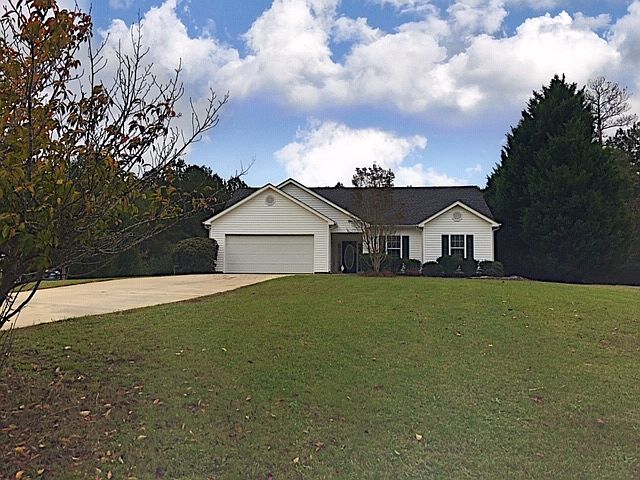 Sweet ranch home on lovely 1+ acre culdesac lot in quiet non-HOA family community, architectural roof installed in 2018, new HVAC installed in 2016, new oven/range installed in 2019, all appliances except freezer in garage remain with the property including washer/dryer & newer side by side stainless fridge, updated lighting & ceiling fans, interior freshly painted, spacious eat-in kitchen w/bay window, vaulted family room w/fireplace, spacious owner suite w/tray ceiling, garden tub/sep shower, great laundry room with shelving, security system, huge fenced backyard with large outbuilding, nice grilling patio includes stainless gas grill, property extends beyond fenced area at rear of property with open area perfect for garden, private wooded area at very back of property. Backyard would also be suitable for in-ground pool. Plenty of room on side of property for RV parking. Great family community approx 10 min to the Newnan square and 10 min to Ashley Park, Little Giant Grocery 3 min away, 15 min to Carrollton. More pictures coming soon!