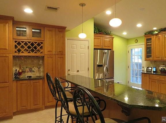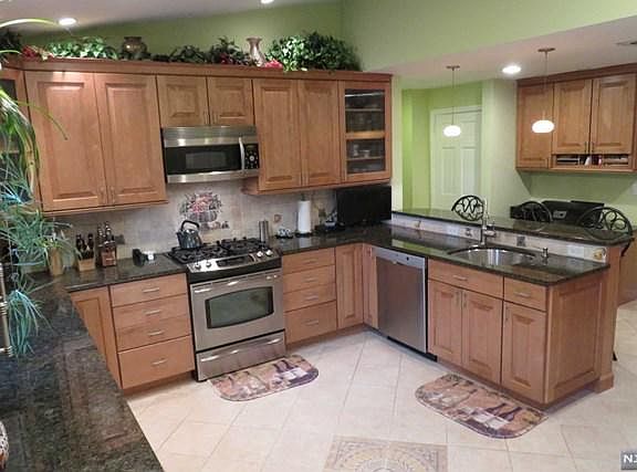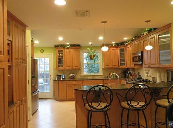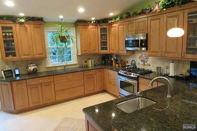 Awesome beautifully presented & elegantly appointed lovely 3BR 2Ba sun filled expanded center hall colonial nestled on a beautiful tree lined st in Maywood's most desirable neighborhoods. Expanded & Impressive Kitchen w/vaulted ceiling, breakfast bar, granite, SS appli, micro, refrig, DW, recessed ltg make this extraordinary kit complete. Enjoy formal dining & spacious light bright front to back living rm w/traditional fpl w/natural gas insert. Sunroom/den or study w/sliders to private fully fenced in yard. 2 beautiful renovated bathrms, 3 spacious bedrms, Hardwd flrs, Partial finished bsmnt. New front portico & front door plus 4 new large windows & outdoor Ltg installed. Updated utilities HVAC, Hot water htr, 200 amp electrical, liberty sump pump, washer and dryer, beautifully lndscpd property w/paver walkway & backyard patio. Extended 1 car garage w/attic. Make this home complete. HS Students can attend Becton Regional HS in East Rutherford. Close to Mall, Trans,Hwy & Park Hurry