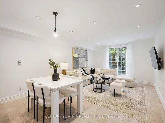 Immerse yourself in this luxurious executive condo townhome boasting SMART features and lavish upgrades throughout + 3 spacious bedrooms + 2 full washrooms + 1 parking + 1219 sq ft (MPAC) + Bespoke kitchen complete with: Stainless steel appliances, built in microwave and oven, quartz countertop, 36 kitchen cabinets with crown moulding, valance trim, soft close hinges, undermount kitchen sinks with a breakfast bar + MARBLE floors in the foyer + Serene views of the parkette in your very own private fenced backyard oasis + Smooth Ceilings + Pot lights throughout with light switch dimmers + Newly painted walls (2025) + Fully renovated washrooms featuring floating vanity, bidet toilets, tile floors + Premium hardwood flooring throughout (2024) + Spacious primary ensuite featuring: Stunning views of the parkette, 4-pc spa inspired ensuite washroom (with 3 jets and rain shower faucet), fingerprint smart door lock to access the primary bedroom, and custom built in cabinets and drawers + NEW AC (owned 2024) + Smart doorbell (Google Nest) + Smart lock keypad with fingerprint features/access + Ample storage available + OVERSIZED closet and storage in the main level bedroom + Excellent location: 1 min walk to public transit, 5 min walk to Antibes community centre (indoor swimming pool, basketball court, gym), 5 min walk to park and trails + 3 min to Tim Hortons, 3 km to Promenade Mall, Minutes to Hwy 401/407/400, 15 mins to Yorkdale shopping centre + List of upgrades attached + Backyard parkette is gated and exclusively offered to residents only