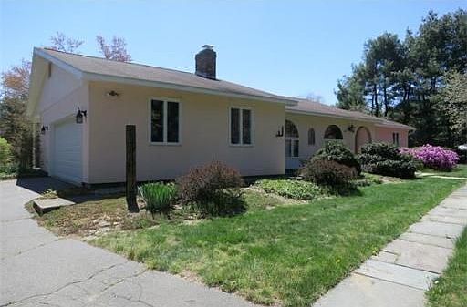 Enjoy single level living in So. Amherst on minutes to Colleges, town center. The gracious entry welcomes you into the sunken living room with slider, remodeled kitchen with cherry cabinets, kitchen island with open floor plan to family room with cherry floors & stunning field stone fireplace. Dining room with slider exits to expansive, gorgeous, landscaped private yard w/ views. 1854sqft with 3 brs, 2.5baths, laundry on main level. Huge finished basemt. w/ closets and storage. Circular drive!