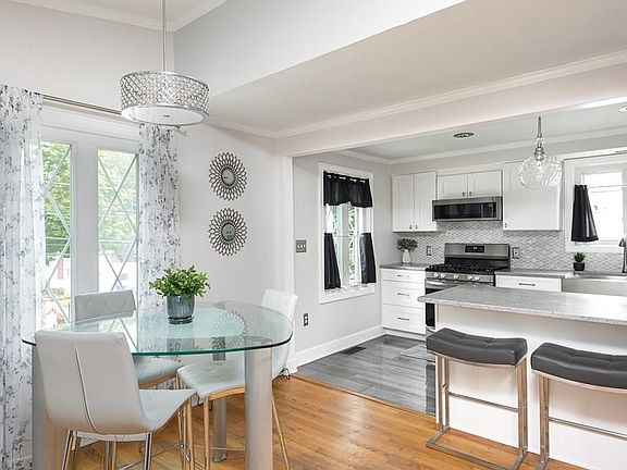 - Kit Dscrp: Dining Area, Countertops - Stone/Granite/Solid, Cabinets - Upgraded, Flooring - Stone/Ceramic Tile, Stainless Steel Appliances, Recessed Lighting, Remodeled, Exterior Access, Gas Stove, Peninsula, Lighting - Pendant, Crown Molding