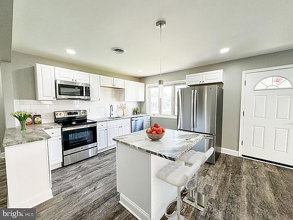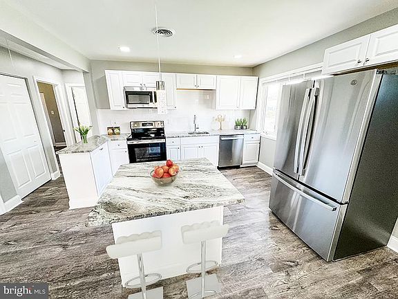 Welcome to this stunning home located in the established Garfield Park neighborhood of New Castle, Delaware. This beautifully renovated property offers an array of features that will surely impress any discerning buyer. As you step inside, you'll be greeted by a spacious and open concept living room and kitchen, perfect for entertaining family and friends. The entire interior has been tastefully redone, boasting new luxury vinyl plank flooring, recessed lighting, and light neutral paint colors that create a warm and inviting atmosphere. The brand new kitchen is a chef's dream, featuring stainless steel appliances, ample counter space covered in stunning marble countertops, white cabinetry, a subway tile backsplash, a double door refrigerator, and a center island with storage and an overhang for barstool seating. The large living room seamlessly flows from the kitchen and offers plenty of natural light through sliding glass doors that lead to the fully fenced-in backyard. This home offers four bedrooms, providing plenty of space for a growing family or the option to utilize one as a home office or gym. The primary suite is a true retreat with an en-suite bathroom with a hand tiled walk-in shower, a walk-in closet, and sliding glass doors with a separate entrance. This unique feature also offers the potential to be converted into a separate apartment, perfect for Airbnb and providing extra income. Both full bathrooms have been completely redone with new vanities, light fixtures, and hand-laid tile. The attention to detail and quality craftsmanship is evident throughout. The exterior of the home has also been updated, with new doors, windows, and siding, ensuring both style and energy efficiency. The ranch-style layout provides easy one-floor living, while the grassy front yard and private driveway offer convenience and curb appeal. The fully-fenced backyard provides ample space and privacy for outdoor activities and gatherings. Located in an established neighborhood, this home offers easy access to major routes including I95, I295, I495, Route 9, and Route 13. Commuting is a breeze, with close proximity to the Delaware Memorial Bridge and public transportation access. Additionally, you'll find a variety of shops and dining options just moments away. Don't miss the opportunity to make this exceptional property your own. Schedule a showing today and experience the charm and convenience that this home in Garfield Park has to offer!
