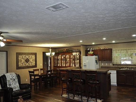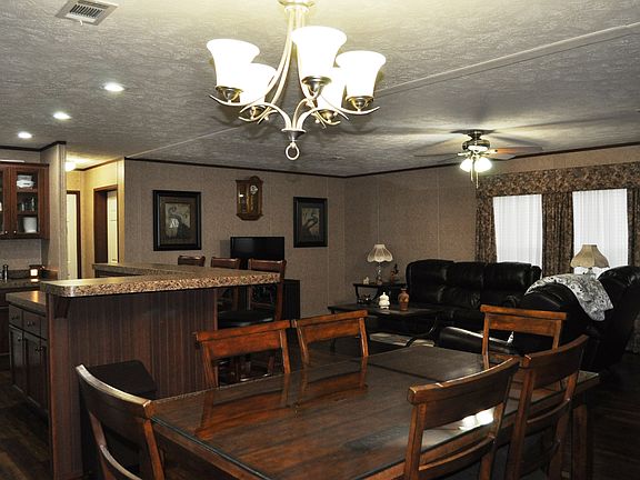 2012 Clayton Double wide mobile home. GE kitchen appliances and many energy efficiency upgrades including a metal roof. (8' flat ceilings with overhead ducts, OSB backer board, low "e" vinyl insulated windows, cultured marble sills, 2" vinyl mini blinds, 40 gal. electric water heater, extra insulation in ceiling and floor, porcelain lavatories throughout, double lavatories in master bath, corner drop-in platform tub, 48" fiberglass shower w/pivot door, 3 door linen cabinet, linen cabinet with single lavatory in guest bath, 30x60 fiberglass tub/shower, 4" backsplash in kitchen, dark solid wood drawers over cabinet doors, 2 door cabinet in utility, cabinet over refrigerator, g/e garbage disposal, g/e smooth top range with self cleaning oven, g/e range hood microwave, g/e 20" refrigerator with ice and water, g/e pot scrubber dishwasher, bread maker island, dark plank vinyl flooring, 3/4" plywood sub floor. Negreet School District. Located 8 miles from Toledo Bend, the BEST BASS FISHING lake 2 years in a row. Owner is related to listing agent. Price is for mobile home only). Carport and 2 sheds. Willing to lease land or sell as a land home package for $$64,900.