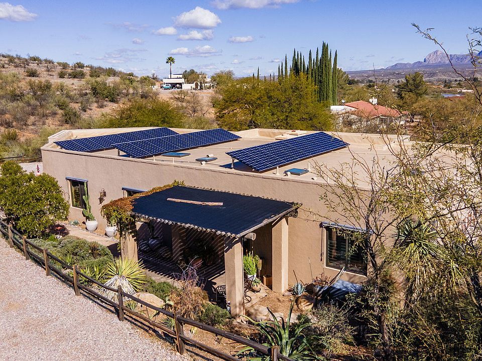 Beautifully remodeled home with incredible views across the Santa Cruz River Valley to the Santa Rita Mts and more. Flagstone flooring. LVP in Master & cork in the Guest Bedrooms. The outdoor kitchen includes a pizza oven and takes full advantage of the views, as do the NE facing windows of the home. There is an extra lot to the N which is part of the HOA. The lot did not pass a perc test. The home itself is not part of the HOA. This is a gem of a home with seller owned solar. Eco Block construction & Terrace gardens are a great amenities