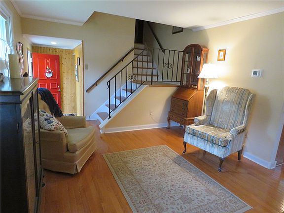 Well loved home in Spencerport Schools. Center entrance split offering beautiful gleaming hardwood floors, formal living room, open dining room to the kitchen for those big gatherings. Lots of counter and cupboard space with a breakfast bar. Cozy family room with a sliding door to the patio. Upper level offers 3 bedrooms, powder room off the main suite. Many new features includes a new tear off roof 2023, Asphalt driveway 2015, gas hot water tank 2023, furnace and central air 2010. Home is move in condition with a fast close if needed.