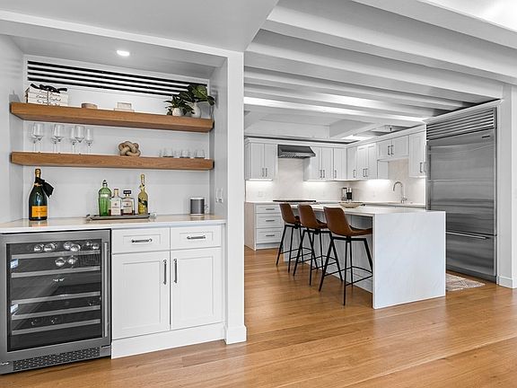Historic Commercial Wharf waterfront condo with front to back water views of Boston Harbor, Columbus Park and the City skyline, from two private balconies. This two bedroom, two bathroom 2023 renovated condo showcases a bright, modern open floor-plan, with brick & beam ceilings & white oak hardwood floors throughout. A top of the line kitchen with a Subzero refrigerator, Wolf stove, Bosch dishwasher, Aurora quartz counters with full height backsplash, waterfall island, and bar area & wine fridge. European doors, a herringbone tiled laundry room, granite fireplace, Mitsubishi mini-split HVAC units, and Samsung Frame TV’s! The two harbor view, north facing bedrooms have separate balcony doors and a master suite boasts an expansive walk in closet with an en-suite bathroom. Professionally managed building offers 24-hour security, 1 deeded parking space, guest parking. Ideally located near the North End, Downtown Crossing & all major transportation points.