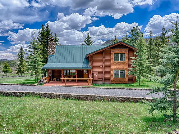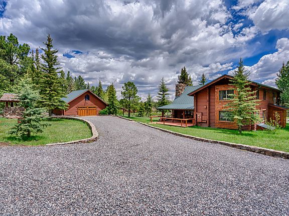 Beautiful rustic log cabin framed against a large aspen grove backdrop with lawn sloping down to a cattail lined trout pond fed by a small year round stream. Very rare multi acre property located in the heart of the village. Insulated but not isolated. Free standing garage/barn for all of your toys with a large recreation room on the second floor. Three additional building sites for more cabins if desired. Separate from listed property but adjacent to subject property is vacant two acre parcel that could also be purchased (same ownership(.