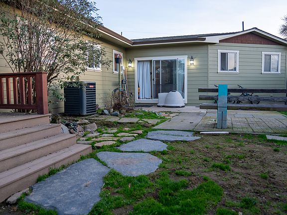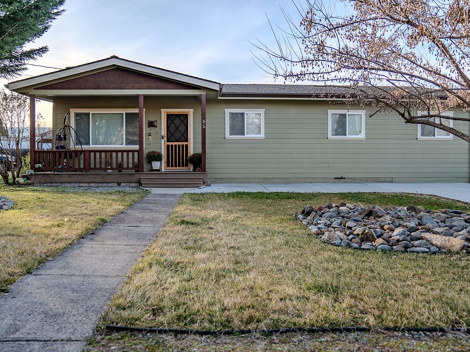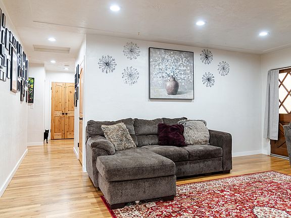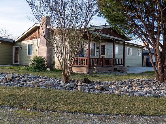 Charming 3-bedroom, 2.5-bathroom home, thoughtfully updated and ideally located in the heart of Central Point, close to local elementary, middle, and high schools. This property features two large driveways with ample space for vehicles, plus room for an RV or boat. The private, covered front porch offers a peaceful retreat. Inside, the home is bright and inviting with LED recessed lighting and dual-pane vinyl windows, highlighting beautiful hardwood oak floors throughout the living areas and bedrooms. The open living room seamlessly flows into the dining area, while the modernized kitchen boasts stunning alder cabinetry, quartzite countertops, a hammered copper farmhouse sink, and sleek black stainless steel appliances. Bonus rooms off of