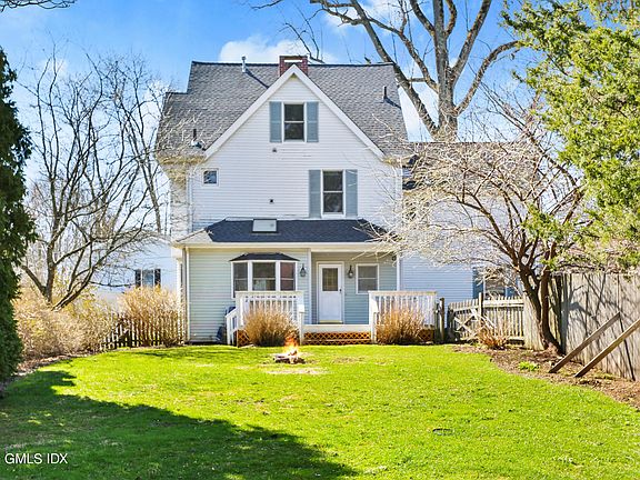 Renovated 4 bedroom/4.1 bath. Located close to Loughlin Park in Cos Cob. Extremely private, level lot. High ceilings and original moldings. New kitchen in 2009, renovated in 2018. New second floor bath in 2009, renovated master bath in 2009. New windows in 2009, new roof on the house in 2020, new gas boiler/heating system n 2017.Large deck and level yard. Master bath has a vaulted ceiling & dressing area. Laundry was brought to the second floor in 2009, where 5th bedroom was. CT Basements waterproofed the basement 3/2021, transferable warranty.