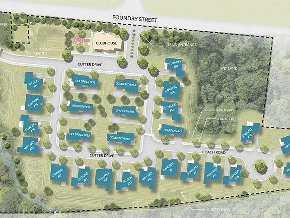 OPEN HOUSE Charming New Construction, RANCH-STYLE Home in Sawmill Village, South Easton's New Community! Nestled within a picturesque 44-home development, this CARDINAL ranch-style house offers the perfect blend of comfort, convenience, and natural beauty. This thoughtfully designed home boasts two cozy bedrooms, providing ample space for relaxation. Plus, a dedicated study area offers endless possibilities for remote work or creative pursuits. No need to worry about parking or storage space with the convenient TWO-CAR GARAGE at your disposal. The well-seasoned developer is installing a GEOTHERMAL heating and cooling system with an impressive HERS rating on this energy-efficient home. Ask us about the on-site restored stream and the Geothermal Tax Credit you'll get from purchasing this home! This ranch is estimated to be completed SUMMER of 2024! (555 Foundry St, S. Easton on maps)