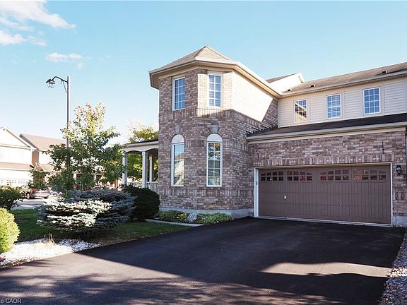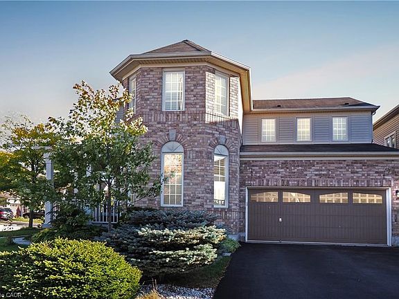 Welcome to Millpond one of Cambridges most desirable communities where this beautifully built Mattamy home combines timeless style, thoughtful upgrades, and modern convenience. Step inside and you'll immediately notice the 9-foot ceilings and custom hardwood flooring that flows throughout both the main and upper levels completely carpet-free living. The open-concept main floor features elegant archways, a coffered ceiling, and a gas fireplace that anchors the family room. The spacious kitchen offers an abundance of maple cabinetry, granite countertops, a center island, pantry, and a gas/electric hookup ready for the oversized 36 gas stove perfect for any home chef. A bright dinette walks out to the fully fenced, beautifully landscaped backyard, ideal for relaxing or entertaining outdoors. Upstairs, discover three generously sized bedrooms, a versatile den, library or office area, and a convenient laundry room with washer and dryer included. The primary suite features a large walk-in closet and a luxurious ensuite with a soaker tub and separate shower your private retreat after a long day. The finished basement extends your living space with two recreation areas with many recessed lights and luxury vinyl floors and a two-piece bath perfect for a home gym, office, or games room. Additional highlights include a 200-amp electrical service, alarm system that is not currently monitored, double garage with built-in storage and garage door opener, and a garden shed for outdoor storage. Located steps from walking trails, schools are within walking distance, and just minutes from shopping, restaurants, and highway access, 15 minutes to Kitchener or Guelph this is the perfect place to call home. Don't miss your opportunity to live in Millpond where comfort, quality, and community come together.