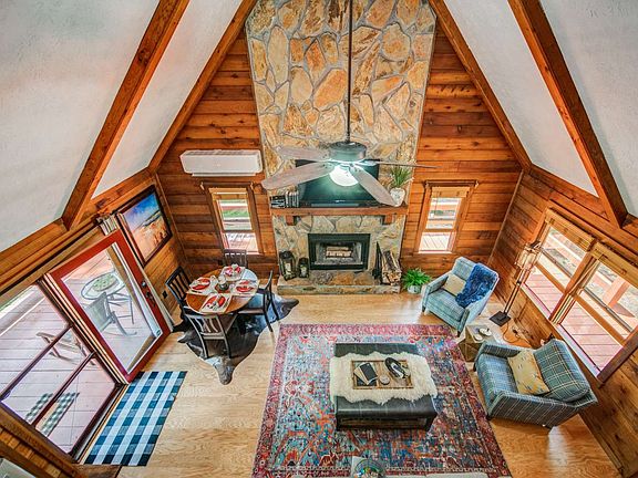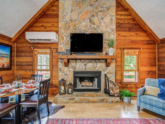 Great opportunity to own a cottage in Blue Ridge. This 2 bedroom, 1 bath cabin is perfectly located just minutes from Downtown, Toccoa River and Lake Blue Ridge. It is a thriving vacation rental but would also make a wonderful full time home or just affordable get away cabin. The cabin offers Cathedral ceilings lined in log beams, floor to ceiling fireplace, an open living concept, lots of deck space and outdoor fireplace. This is such an extraordinary cottage with so much to offer!