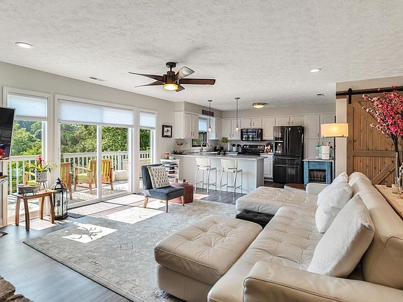 Stunning views from this completely remodeled home in Weaverville! Large Primary suite w/ walk in closet, bathroom w/ double sinks, carrara marble counters & shower. Open concept living area includes a stone fireplace. Kitchen is complete w/ carrara marble countertops & black stainless appliances. Guest bathroom offers double sinks, carrara marble countertops & newer tub enclosure. Beautiful custom barn doors separate the office from the main living area. All new lighting & Norman window coverings & luxury vinyl floors throughout the main level. Laundry in the lower level w/ commercial stainless sink, stainless refrigerator & LG pedestal washer & dryer. Finished space in the lower level offers one bedroom, new carpet, door to backyard, stone fireplace & picture window overlooking the mtns. & backyard. The exterior of the home has been updated w/ new retaining wall, fenced yard & front porch deck. The rear of the home offers decks on both levels. Only minutes to downtown Weaverville!